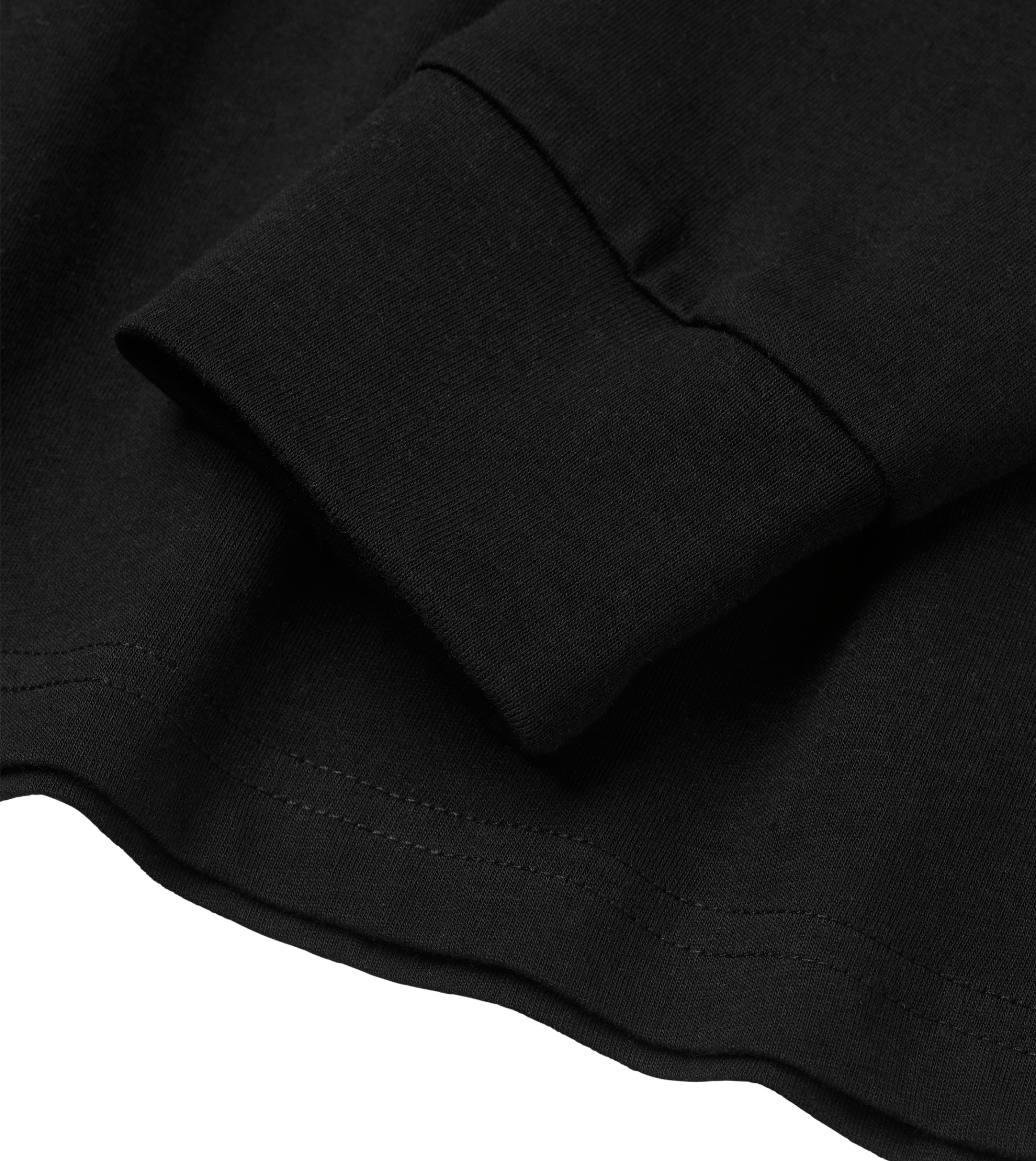 - Chain-stitched shoulder seams and ribbed sleeve cuffs for added durability